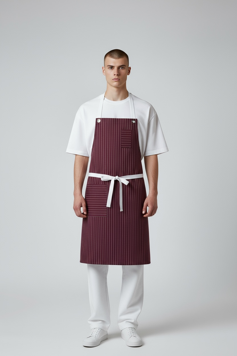 PREMIUM K-132 CASTRO - Cep Detaylı Bordo Beyaz Çizgili Önlük
